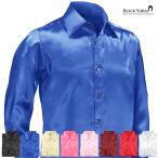 サテンシャツ 無地 光沢 ステージ衣装 ユニフォーム 発表会 ドレスシャツ 長袖 日本製 メンズ mens (シャイニーブルー青) 141405